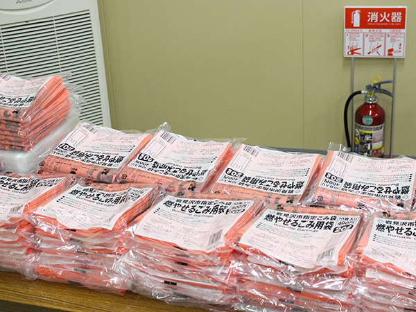 岩見沢市の指定有料ゴミ袋の検品・袋詰め作業しています。