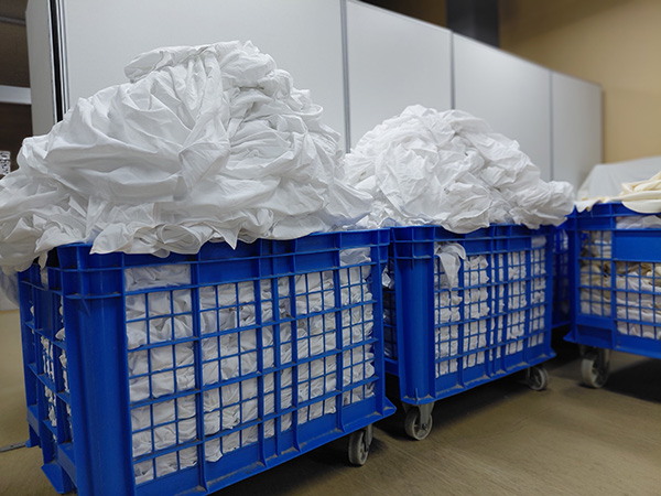 ・シーツなど大きな品物は、仕上げしやすいようにしわを伸ばすため、折りたたみます
